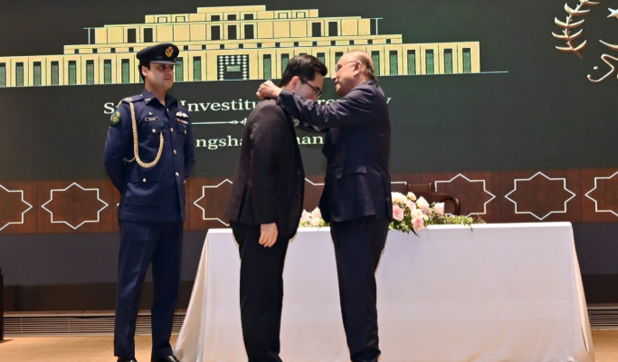 The award was presented on Sunday by Asif Ali Zardari in Changsha, the capital of central Chinaās Hunan Province.