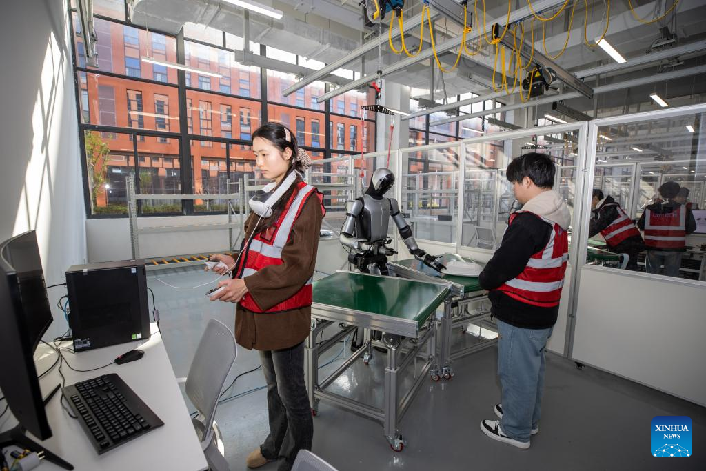 Staff members train a humanoid robot to fetch objects at the Sichuan Humanoid Robot Multimodal Data Collection and Testing Center in Zigong City, southwest China’s Sichuan Province, March 4, 2026. (Photo by Ye Weidong/Xinhua)