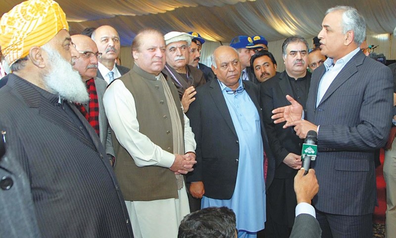 The prime minister was accompanied by senior political leaders, including JUI-F chief Maulana Fazlur Rehman, Pakhtunkhwa Milli Awami Party chief Mehmood Khan Achakzai, National Party president Mir Hasil Khan Bizenjo, Awami National Party leader Mian Iftikhar Hussain, Pakistan Muslim League-Q leader Mushahid Hussain Sayed and Adviser to Prime Minister on National Security retired Lt Gen Mohammad Nasser Janjua.