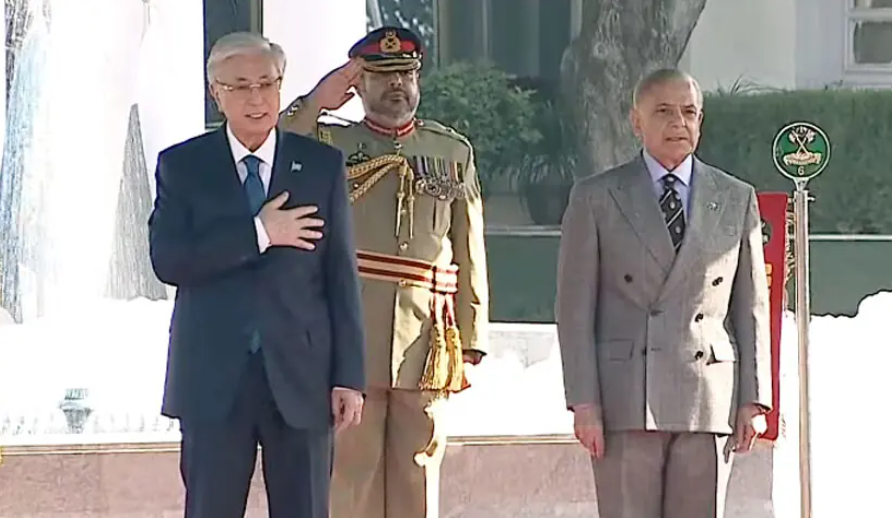 ISLAMABAD: Prime Minister Shehbaz Sharif on Wednesday accorded a warm welcome to President of Kazakhstan Kassym-Jomart Tokayev at his official residence, marking the start of the Kazakh leaderâs two-day official visit to Pakistan.